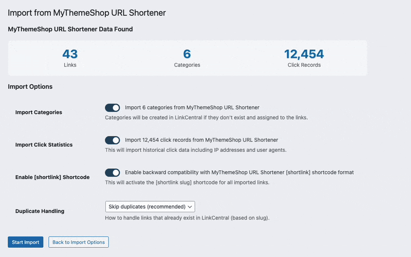 Instantly transfer your short links and analytics from MyThemeShop’s URL Shortener to LinkCentral. No hassle, no manual work. Shorten, manage, and track your links straight away.